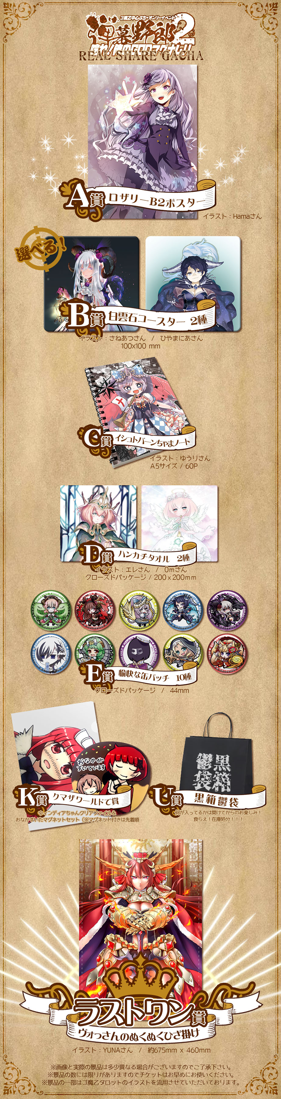 イベント内シェアガチャとは、弾幕野郎2~唸れ!俺のGODマグナム!!~で配布される、シェアガチャ用専用チケットを3枚集めると1回引くことのできるリアルガチャです。